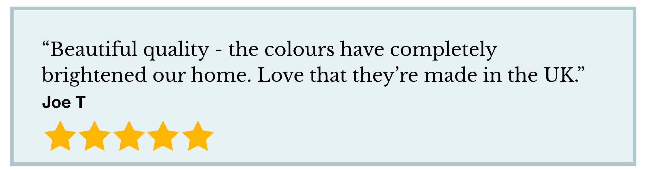 "The quality and design of these items are outstanding. Their bright colours and beautiful patterns have refreshed and brightened our rooms. I love that they are all made in the UK and supports a small business."