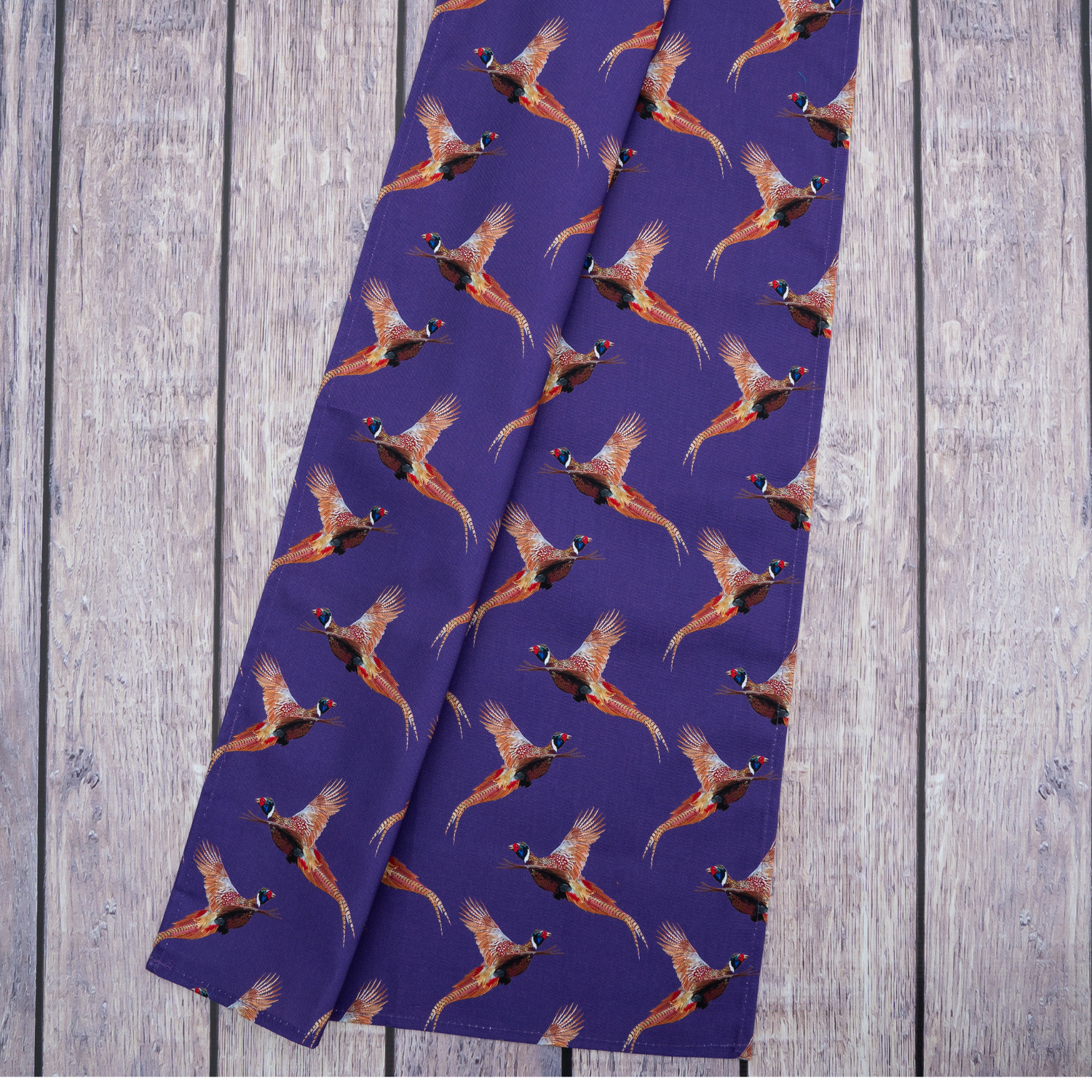 Featuring Tracey Cooper’s hand-drawn pheasant illustration against a rich purple background, this design captures the grace and colour of one of Britain’s most iconic game birds.
